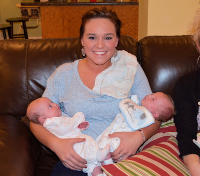 In January we took the twins to Tennessee for the first time. It was a great trip! We got to see lots of friends and family. The twins did well in the car...we only had a few episodes of screaming but they didn't last too long. Overall they did awesome! We had a wonderful time and we even got to make my nephew Aden's 3rd birthday party while we were there. It was nice to be home and I am glad everyone got to meet the twins while they were still newborns. As always...I took a lot of pictures. They are out of order but I'm too tired to sort through them. Enjoy!